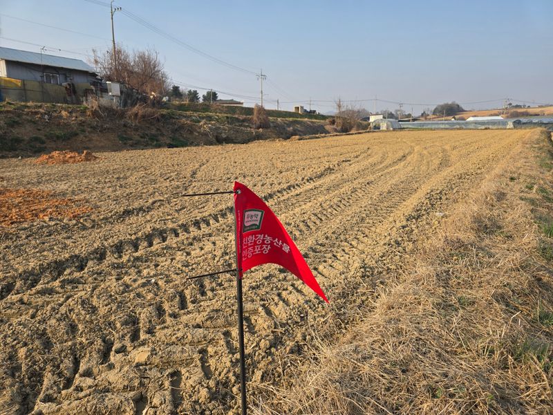당근 종자분해성필립 멀칭작업 대파정식예정지 멀칭작업후 대파모종5판 정식함 오후엔 친환경재배지 표지판작업함