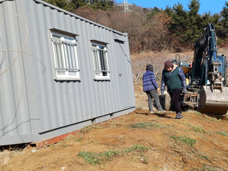 오늘은 창원 농장에 컨테이너박스 안착 시키고 농장주위에 포크레인으로 정리도 하고 흙에 묻힌 암석들도 캐는 작업을하였읍니다