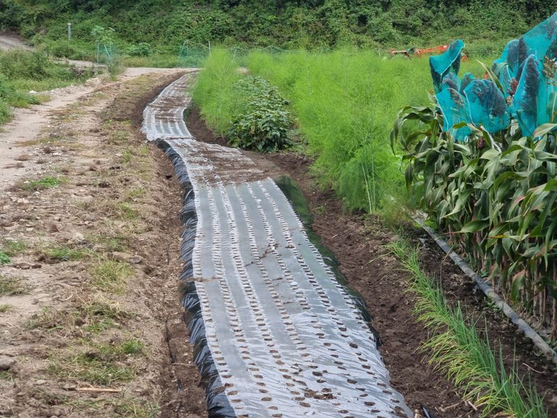 마늘 퇴비넣고 두둑만들고 제초제 살포 후 비닐멀칭함