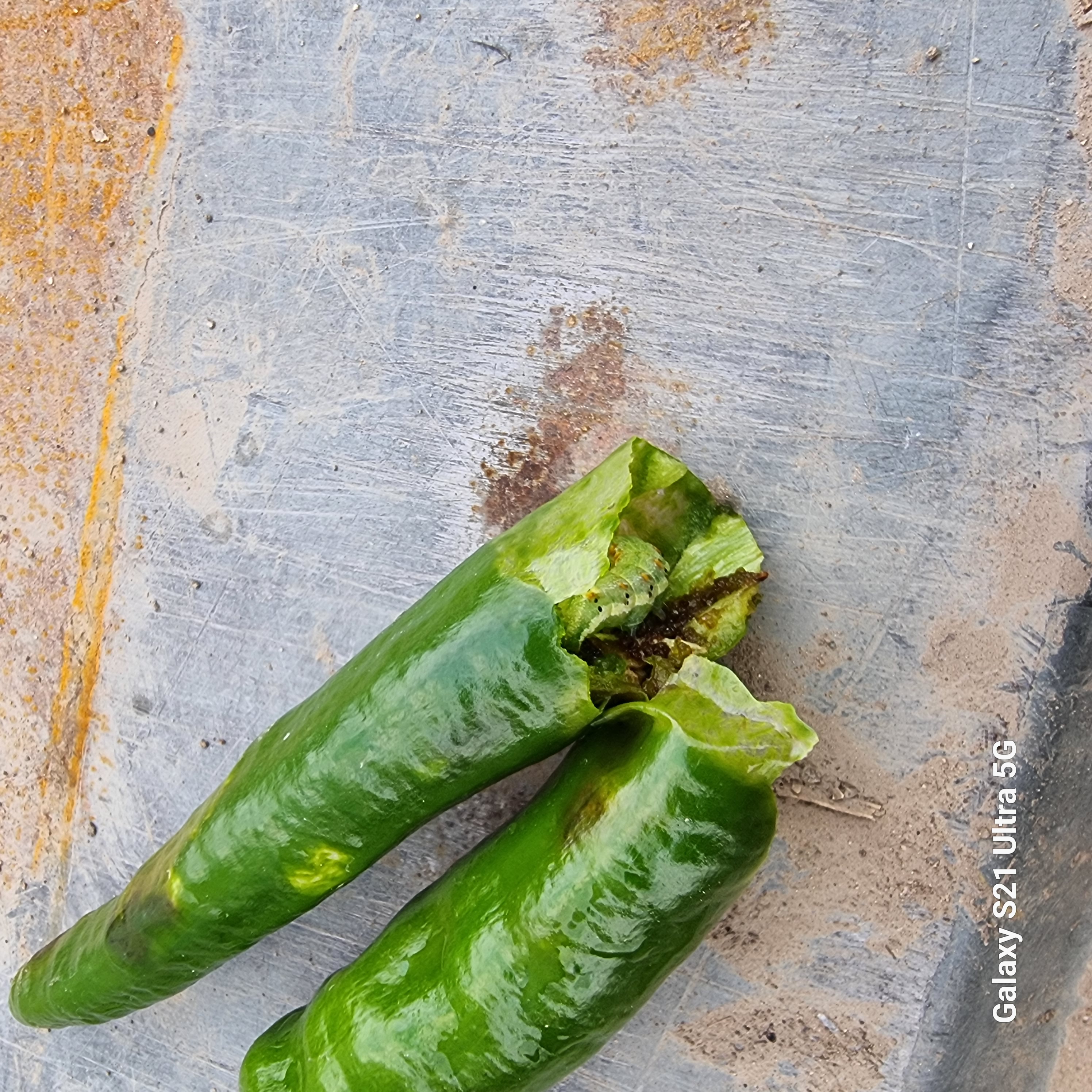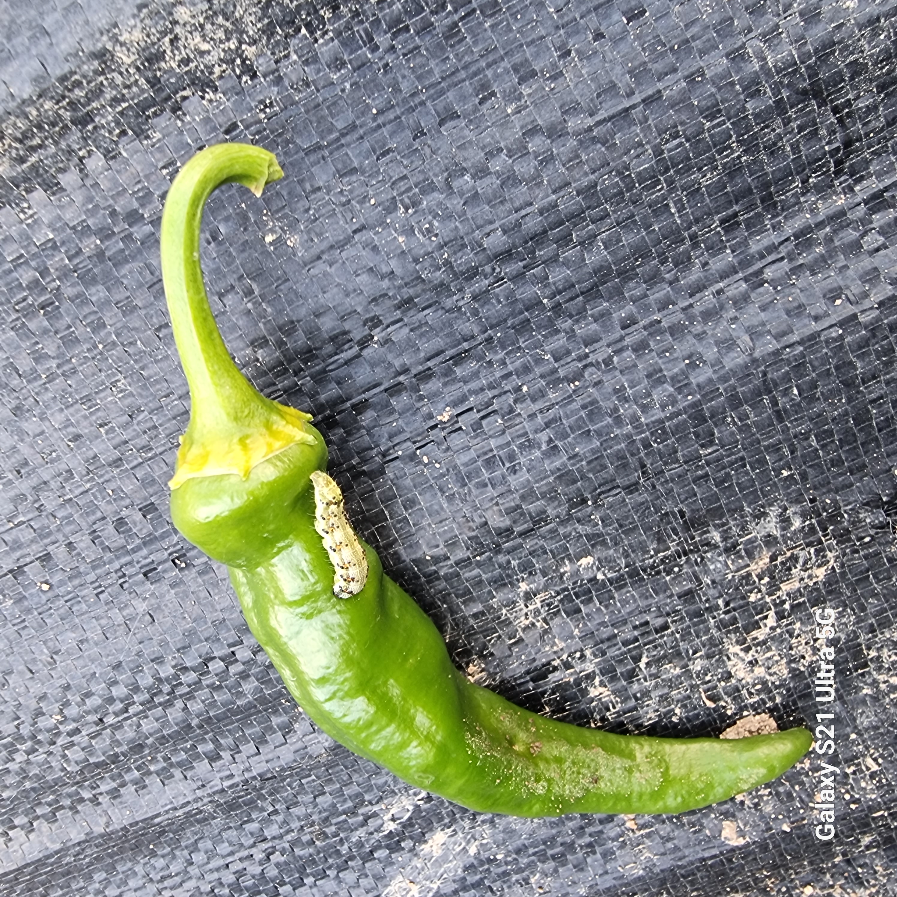 방제시기를 한번 놓쳤더니 담배나방놈이 고추를 아작을 내 놓네요 10개를 땄네요