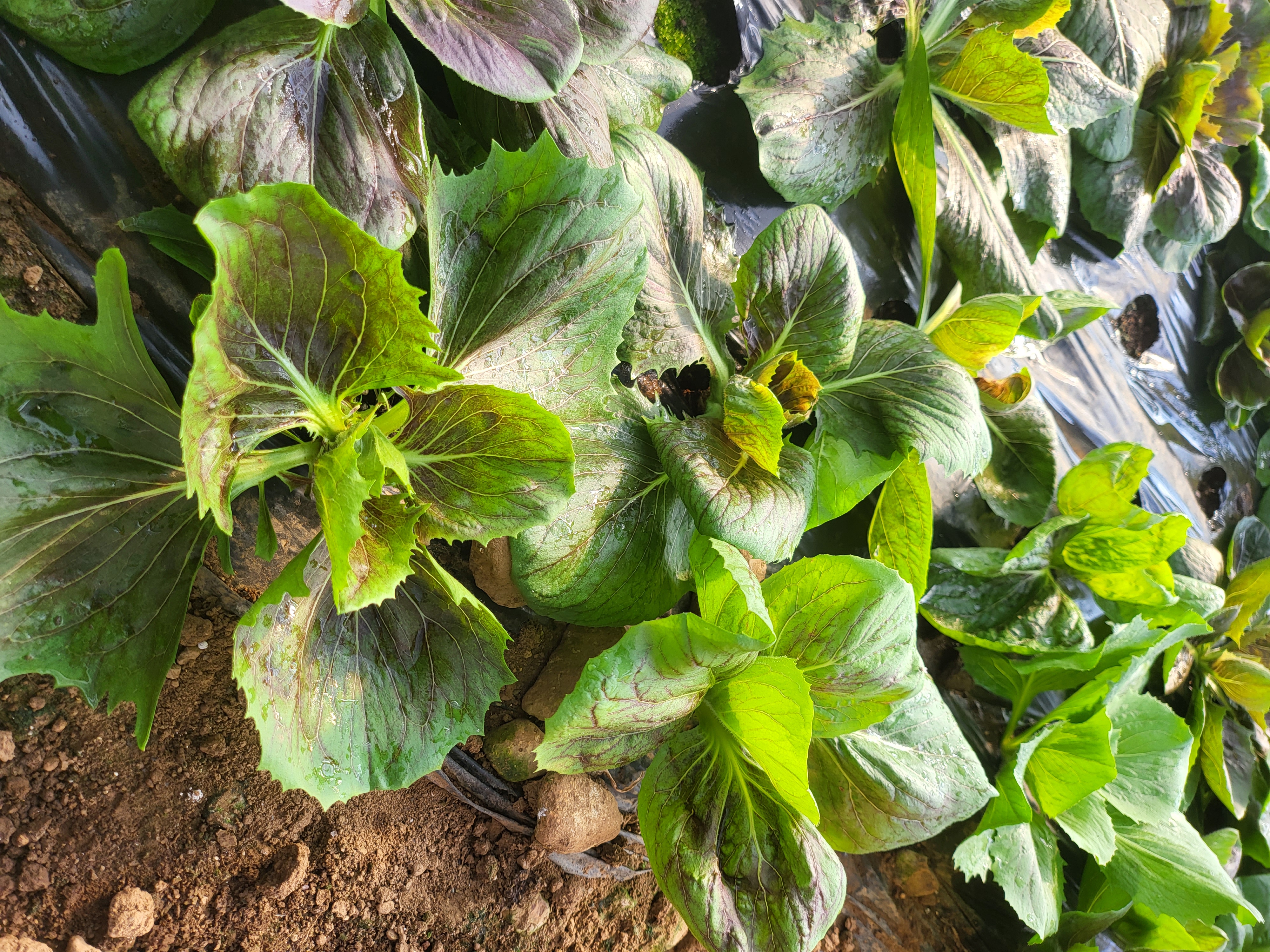 뉴그린 5.6kg수확 생채 4.1kg수확 홍쌈배추 2.8kg수확 경수채&다청채 2.7kg수확 맛청 4.5kg,4.5kg수확 황근대 2.1kg,3.8kg수확 적근대 3.8kg,3.3kg수확