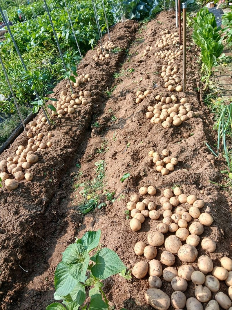 오늘 엊그제 비가와서 땅이 촉촉하기에 상추 고추 가지 감자를 심었네요 ~~
