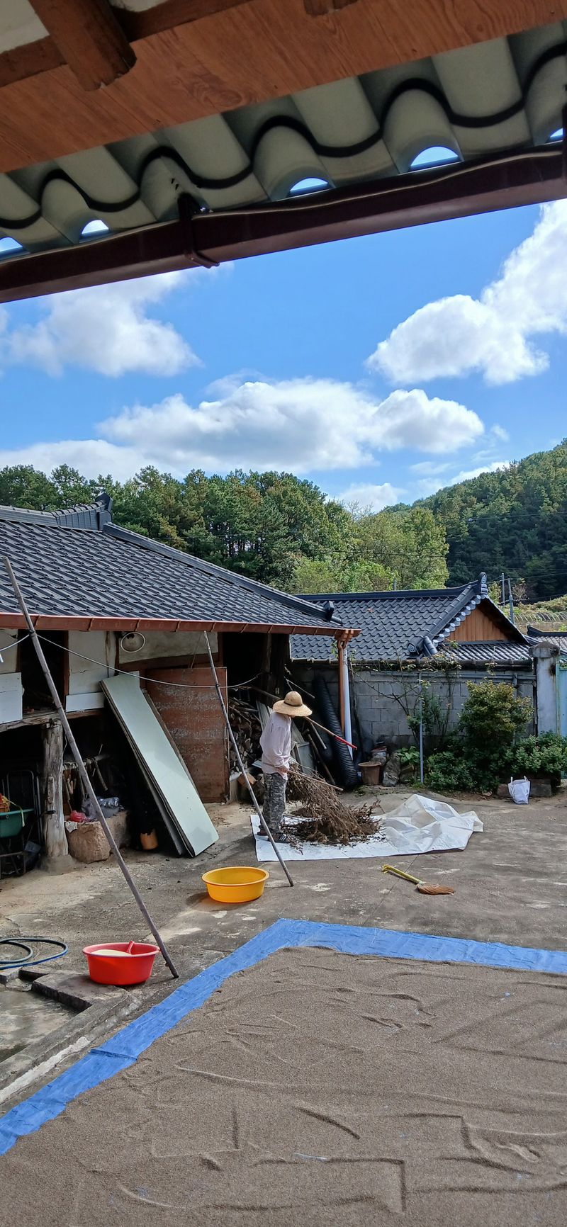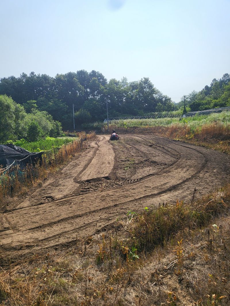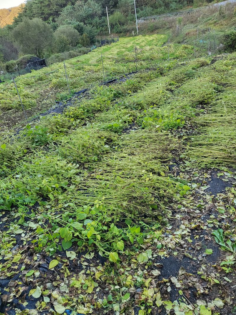 지난해 논두렁 수해입어서 오늘 복구작업 하고 텃밭 이랑 만들어 비닐작업 했어요