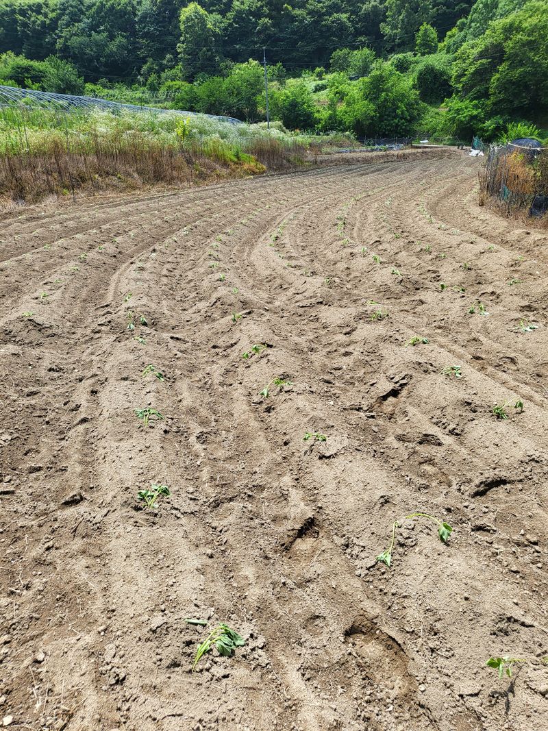 몇일전 노타리 하고 12일 관리기로 고랑을 만들어 들깨 심을 준비완료 했어요