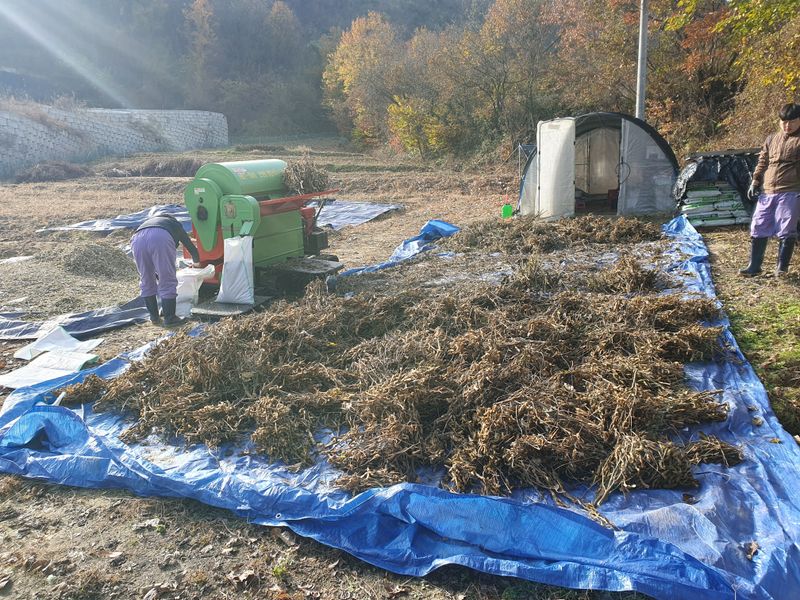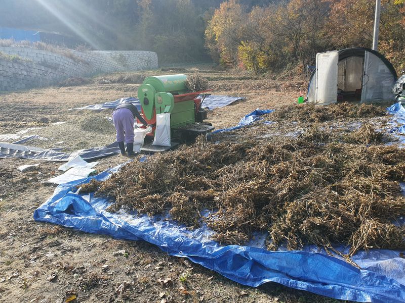 . 어제에 이어 새바람 서리태콩 탈곡작업을 했습니다 자주형 탈곡기로 했는데 유실이 심하네요 2일간 탈곡하여 약 200k 나온것 같은데 팔로가 걱정이네요 선배님들 팔로 방법좀 알려 주세요