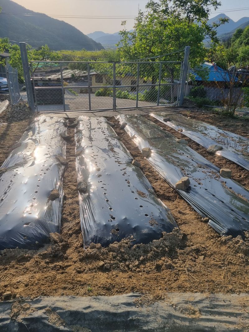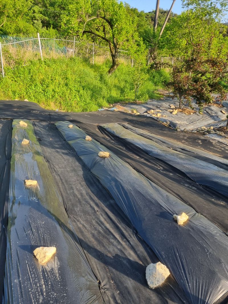 .제초매트1m×200m 입고 .마늘밭옆 밭두둑만들고 비닐깔고 제초매트깔기 .비트심기,콩심기,공심채심기,열무심기