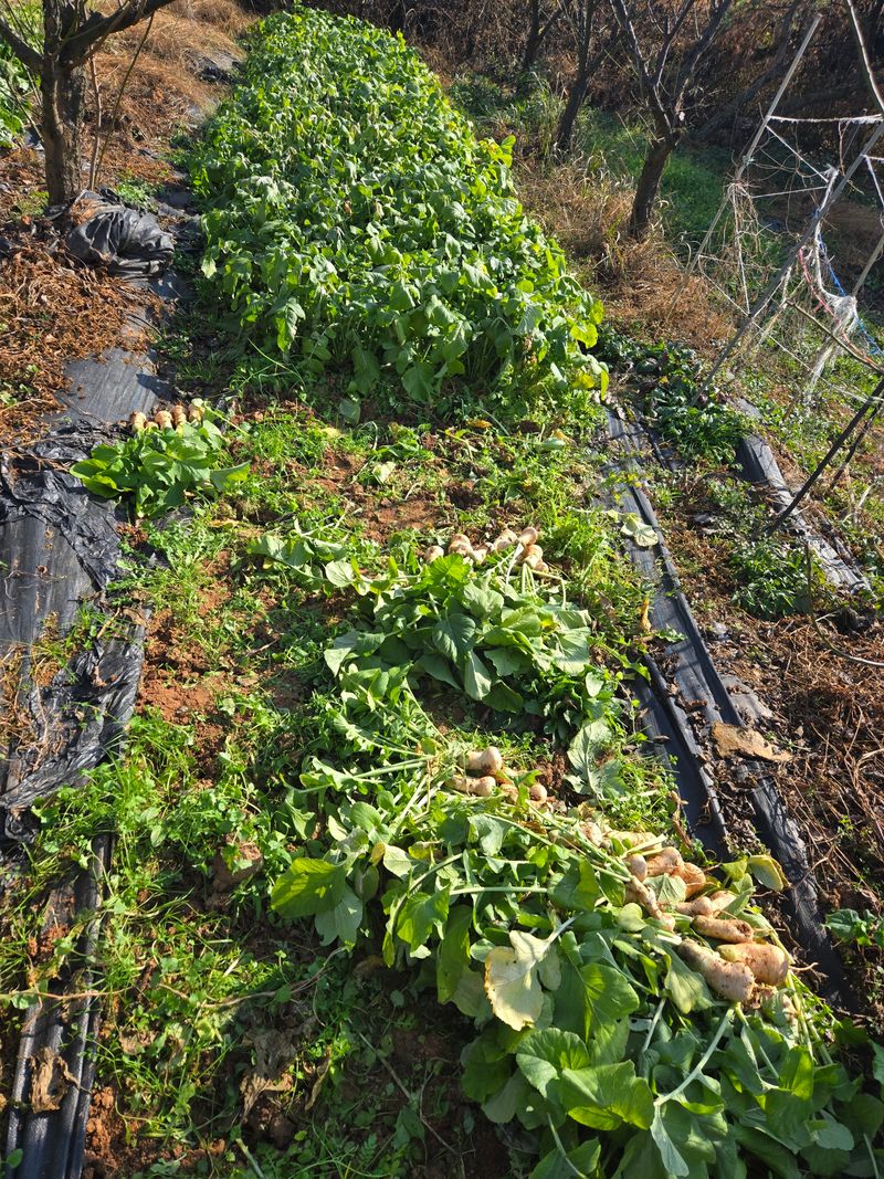 고구마한줄캐고열무심고 배추심고참외.가지.고추따고부추비엇네요