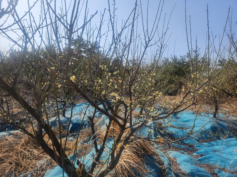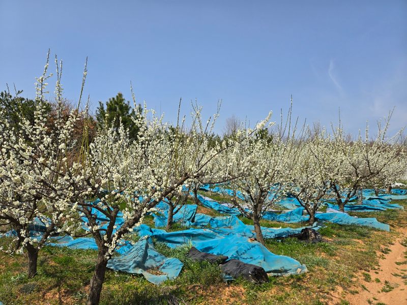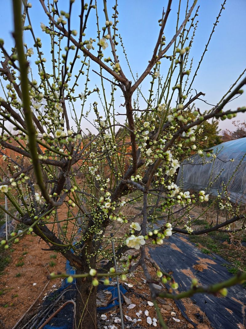 매실꽃이만개했네요 옥수수밭에비닐제거했어요 매실밭정리중입니다