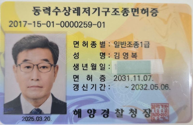 수상동력례저기구일반1급 면허갱신교육수료후시험 90점받았네요면허는 4월2일날찿으러갈거예요
