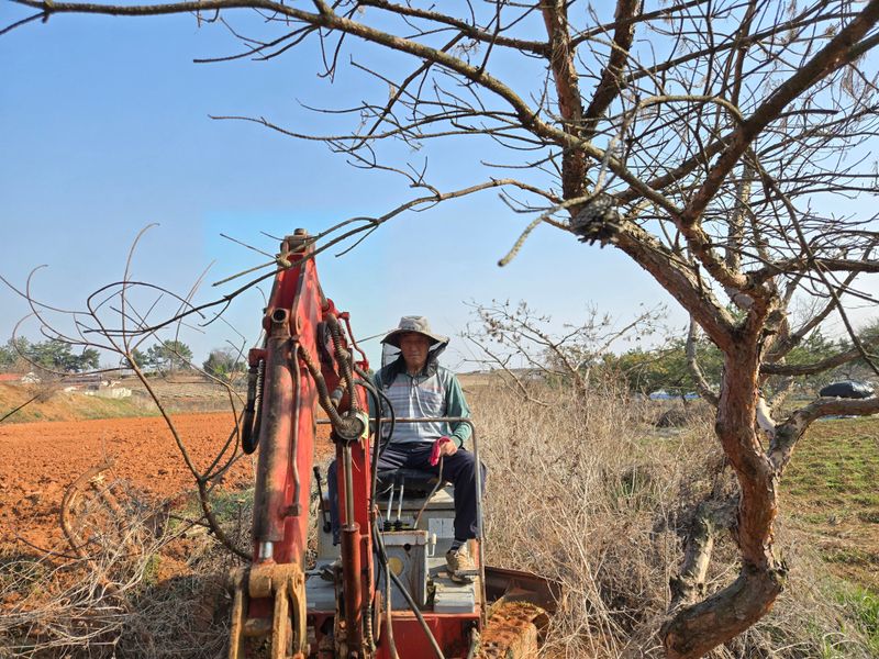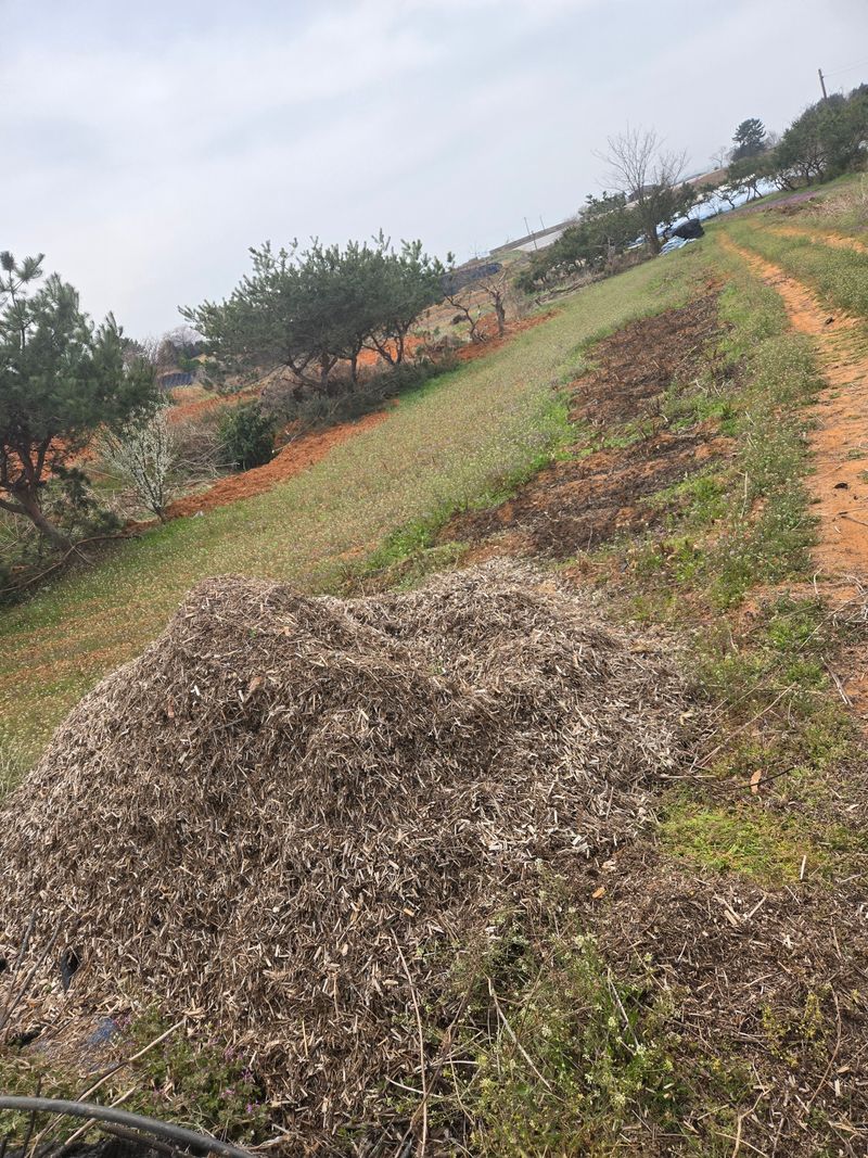 농장 지하수모터물빼고 월동마무리했네요 겨울부직포제거및걸음퇴비 매실나무에한포씩줄려고함니다