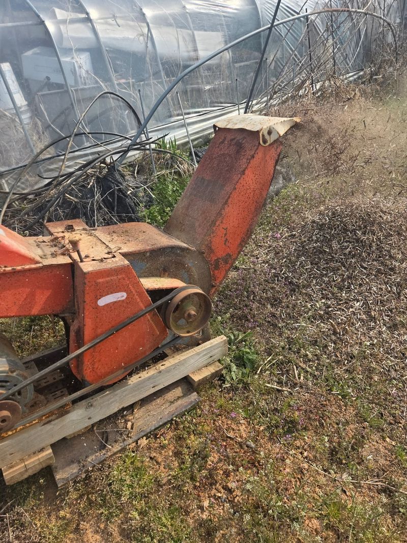 고추대와들깨대를불놓아 태워야하는데화제가겁나서 소여물잘으는카터기로 전부잘게부수어냈어요