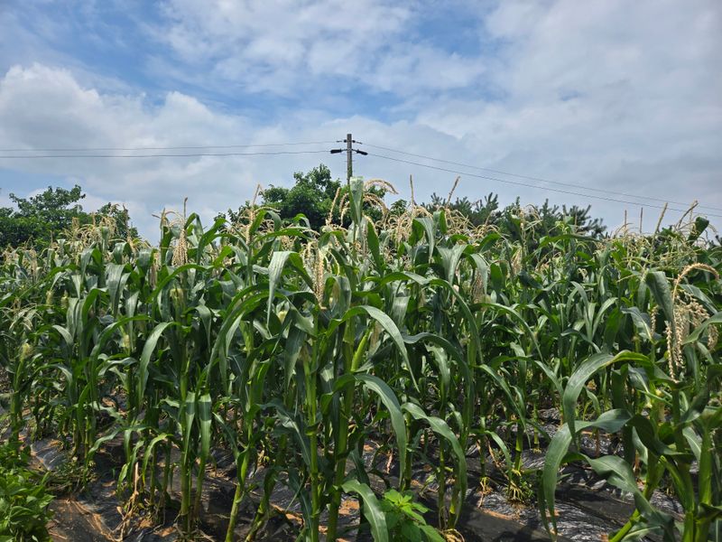 대학찰옥수수가뭄으로수확 반으로줄었네요2차심은것 말라수확이어려울것같아요