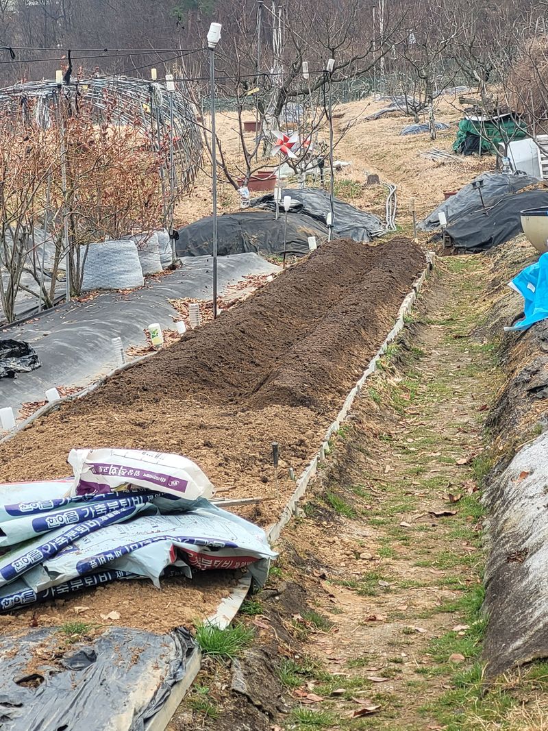 * 복합비료 살포 : 쪽파, 키위, 블루베리, 포도, 살구 등 * 감자 파종준비 : 토사충, 거름, 비료, 붕사 등 살포