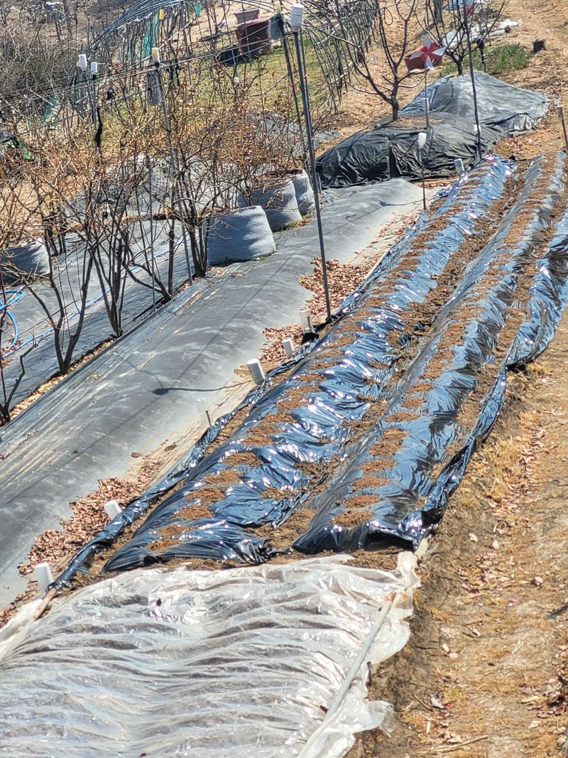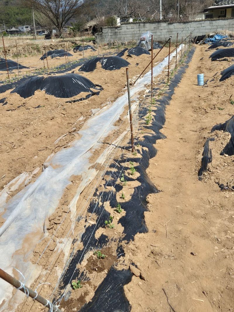 * 강낭콩 부직포덮기 * 완두콩 새싹 올라오기 시작함