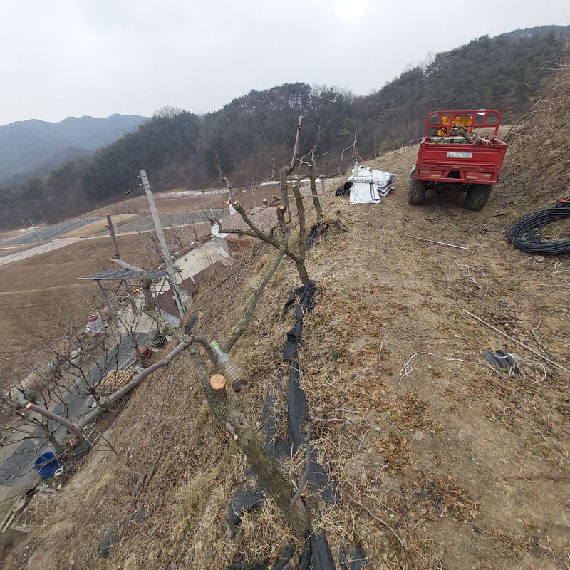 오늘은 임도(작업로)가장자리에 재배중인 왕대추(가지치기) 전지 작업을했다 (수형낮추기)전지작업 전지후 톱신살포 완료