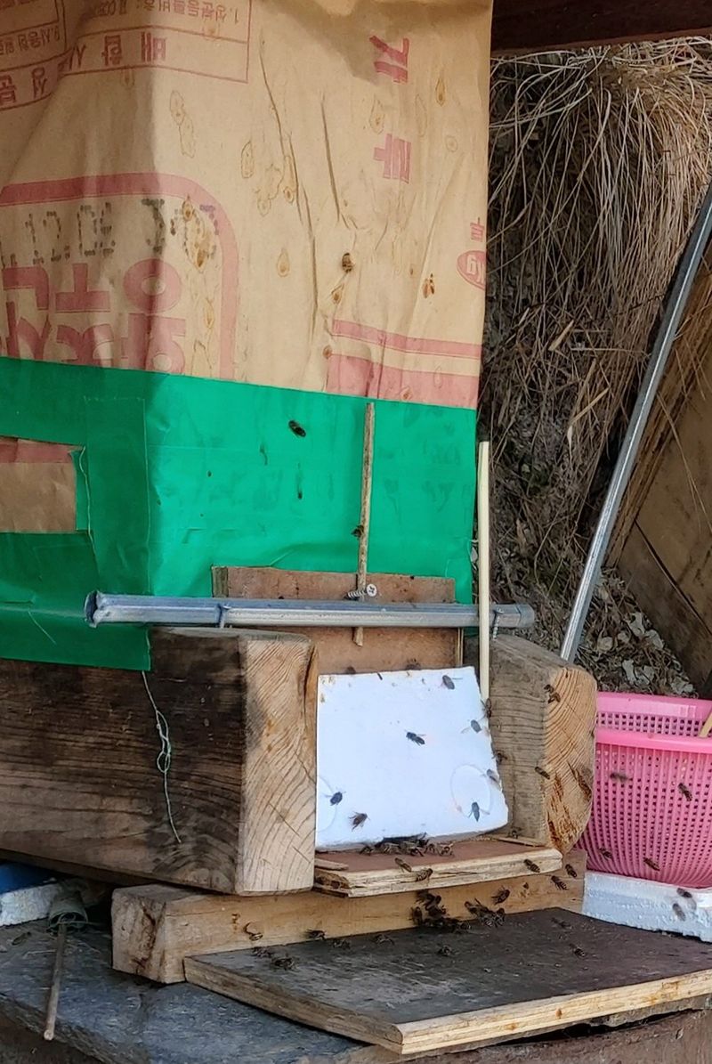 오늘은 날씨가 따뜻한탓에 토종벌이 많이나왔다 (분봉하는것처럼)아직때가아닌데~~만사제쳐놓고 빈 벌통수거하여 토치소독하고 부러쉬로 껄어내고 깨끗하게(4통) 청소완료 내일은 벌받을준비 좋은장소 배치해야겠다
