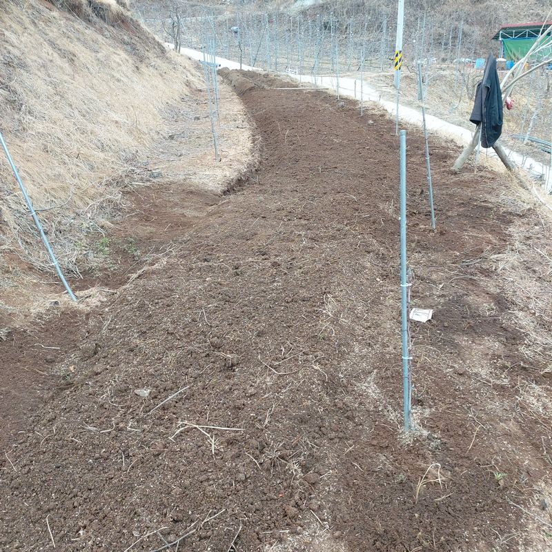 3월5일 오후(비) 오전 장뇌삼심을곳 일주전 살충 퇴비살포한밭 갈아엎기 내일은 유공비닐 멀칭계획~~
