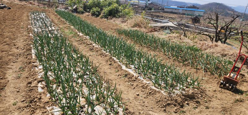 마늘파종 양파멀칭 서리가 내려서 작물폭탄