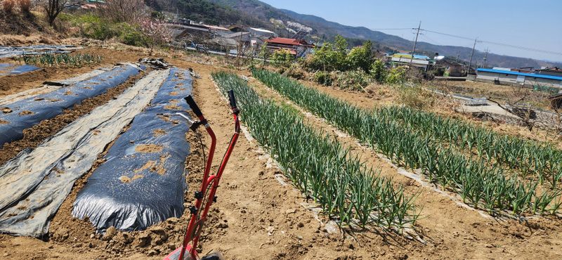 사과식목 상추 시금치물주기 마늘 양파 잡초뽑기 비닐밀칭 오토바이밧데리교환 오만원