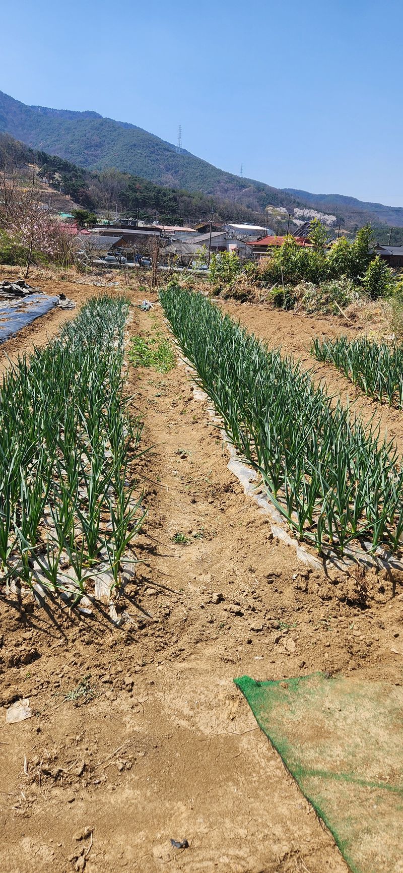 칠성리 고추비닐멀칭 제초메트설치 대나무 복숭아전지 화리 상추물주기