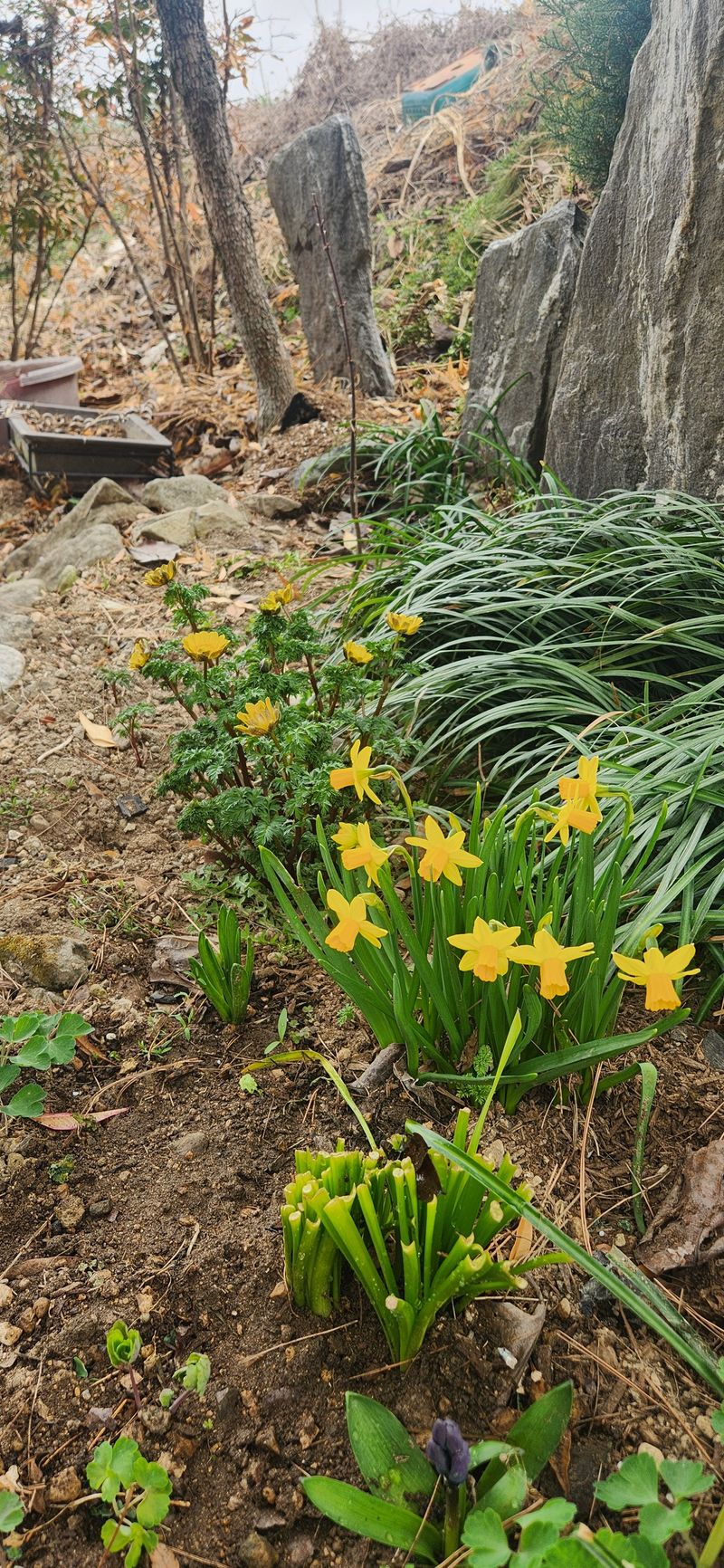 머위앞수확 마눌 양파 추비살포 상추 물주기 수선화만개