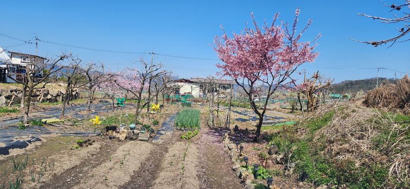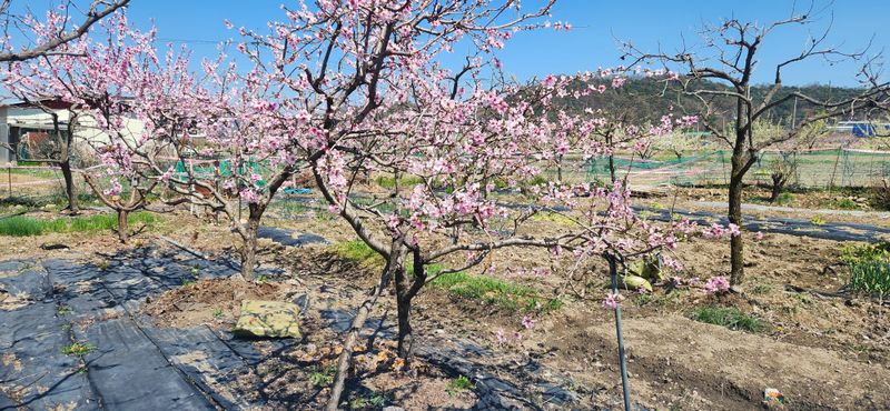 완연한 봄이다 감나무 유황 살포 시금치 하루나물주기 칠성리 복숭아농약살포