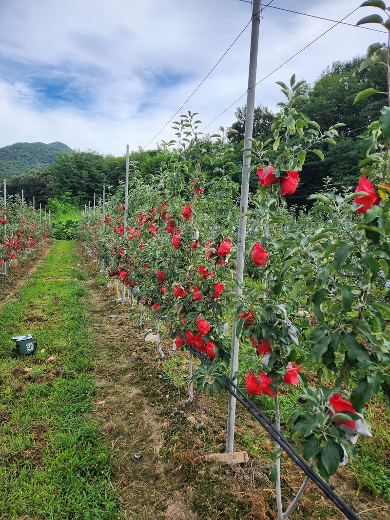 이지플 수확 36짝 선별 포장 5키로 선물용 오후 사과약살포 총 12차 살포