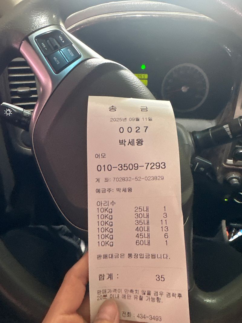 아리수 2차 출하 60짝10키로 김천 공판장 겨애값 25과 72000원 3단이6만원대 총수령 310만 정도