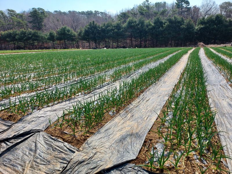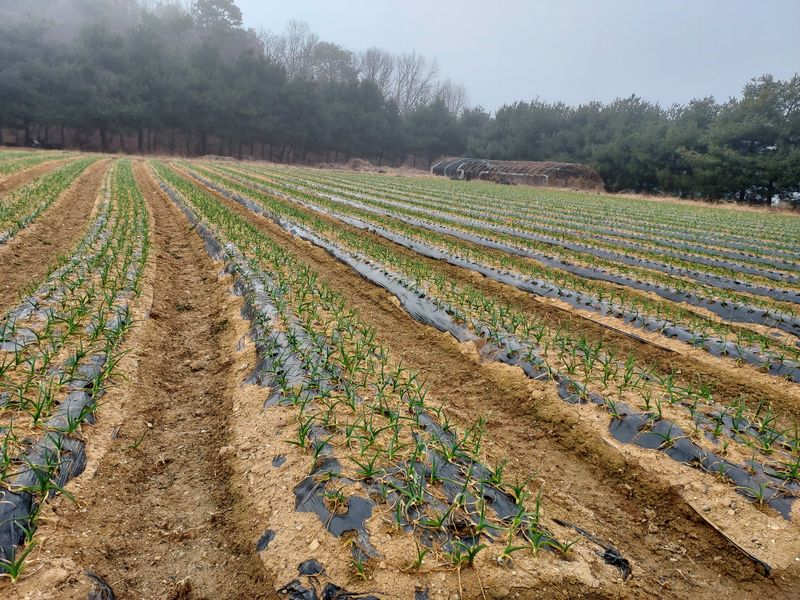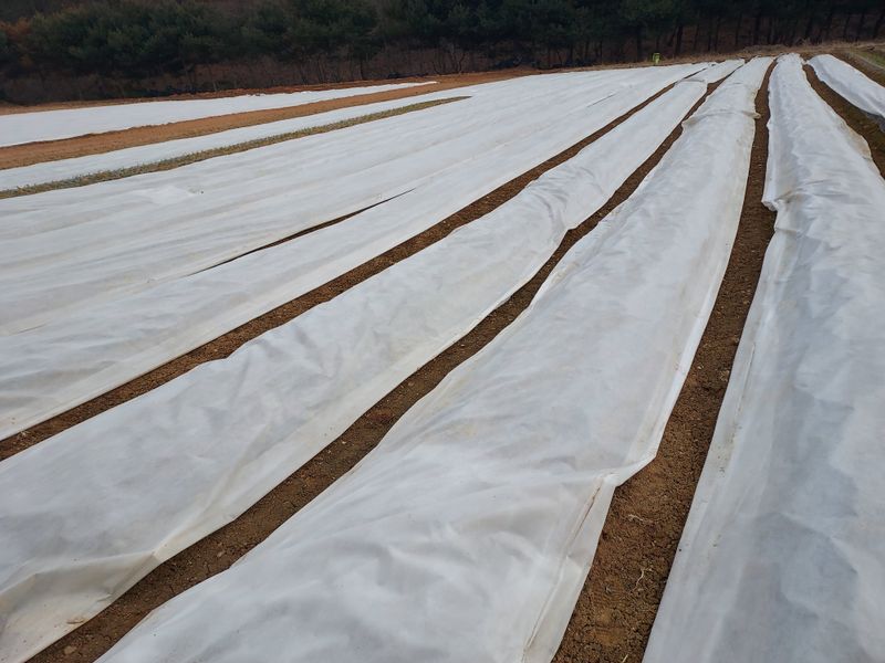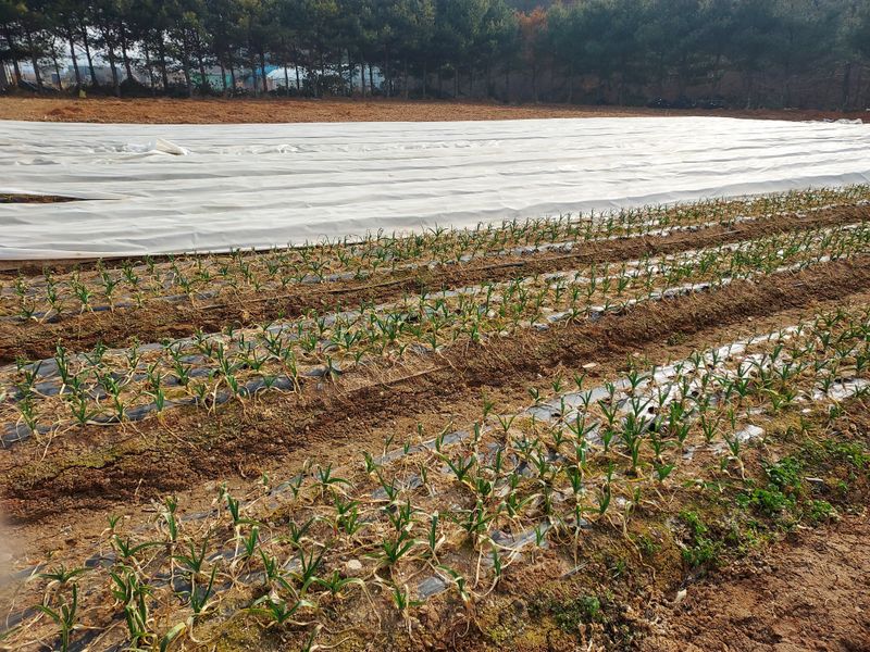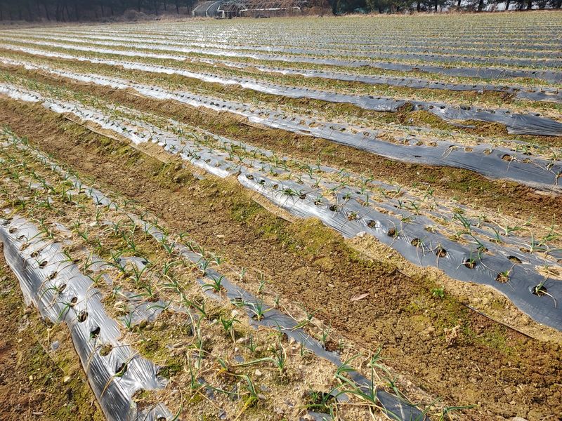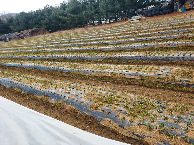 어제에 이어 마늘밭 보온제 버끼고 추비로 살짝 날리듯이 뿌리고 오늘 일과 끝