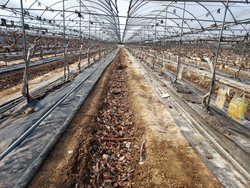 마늘밭 아인산염 살포후 쫑제거 하다 포도밭 송이 다듬기 하기 겨우 두줄 마추고 쉼