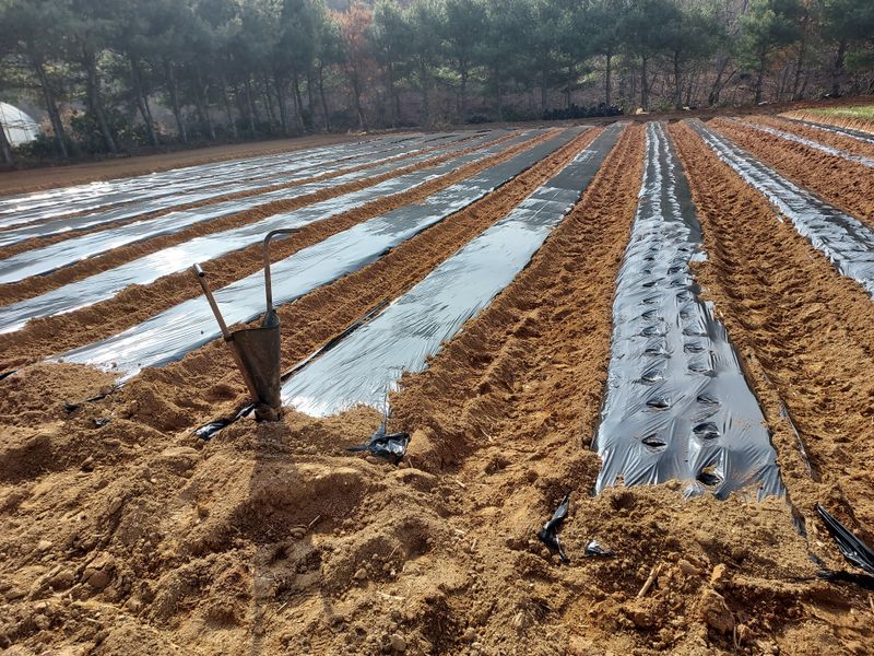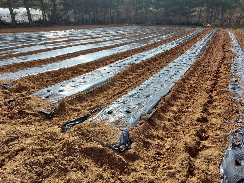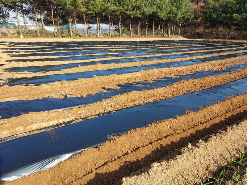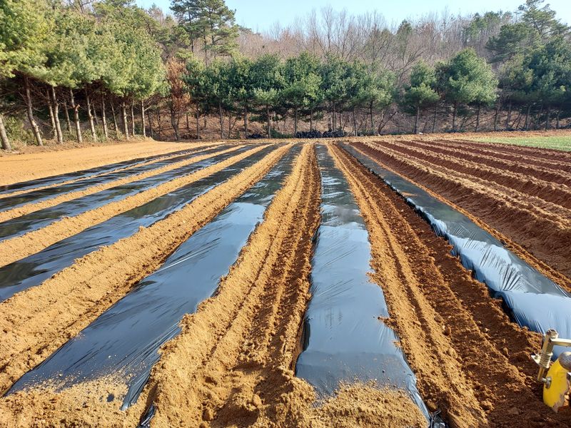 감자밭 갈고 비닐멀칭 하고 감자 파종 준비 끝 내일은 감자 파종 위한 소독작업까지 완료