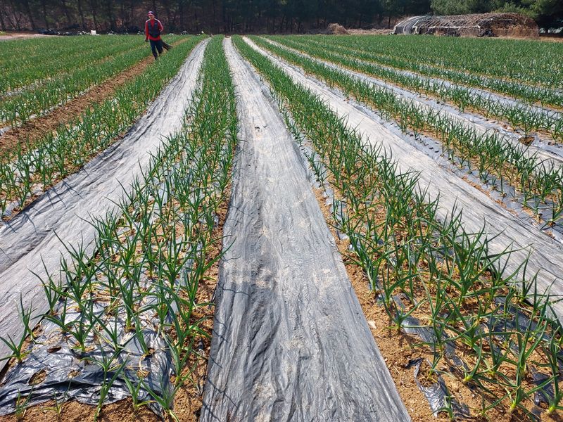 마늘밭 헛골에 제초매트 작업 하다 지난겨울 다친 다리가 통증이 오는 바람에 중단 하고 집으로