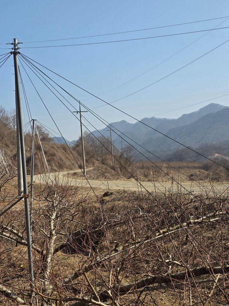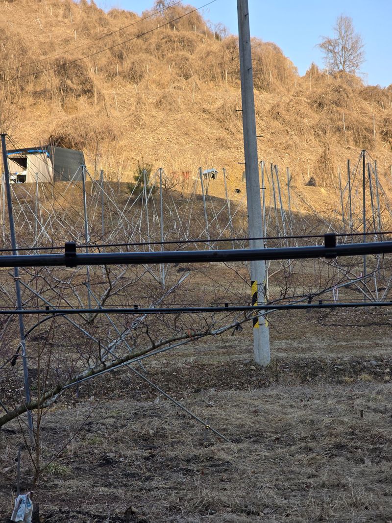 복숭아 밭 관수설치작업중
