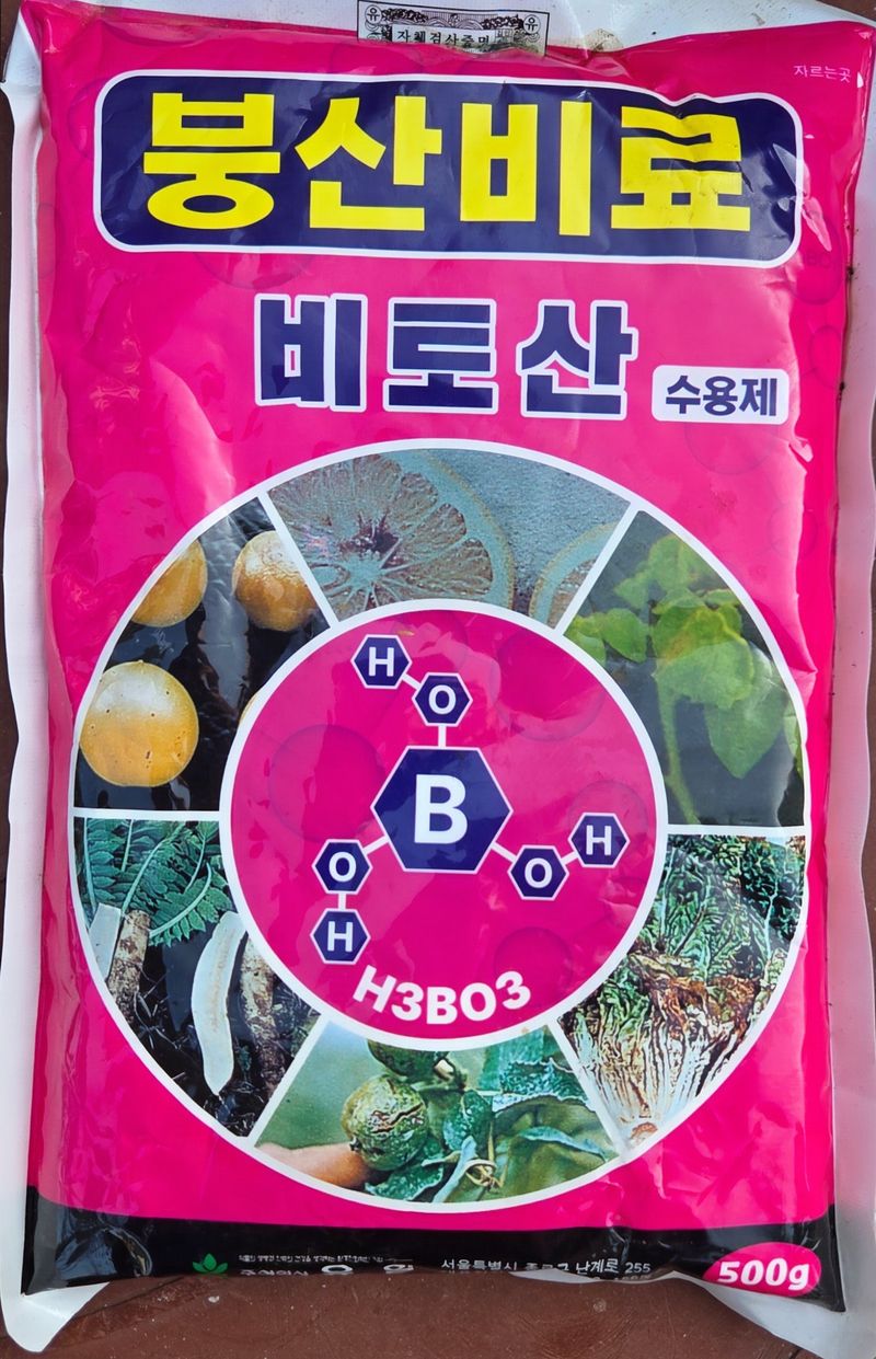 1️⃣하우스에 세포분화 촉진용으로 1)인산칼슘 발효액(25말에 1.5L=12L)+ 2)붕소(50말에 1포 : 말당 10g) 200말 6개동씩 위로 엽면시비(08;30~10;30)