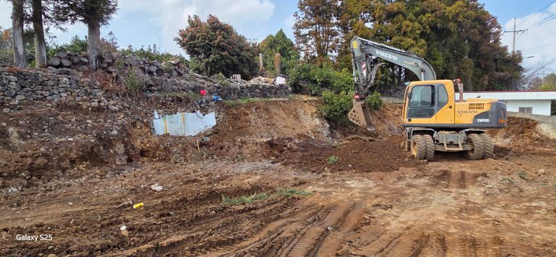 🏡외왓 집 증개축 기반정리 시작 ◇기존 집 철거 ◇집 뒤쪽 평탄화 ◇집 앞쪽 정리 및 밀감나무 이식준비(가식 등)-박정윤(포크레인), 이승용