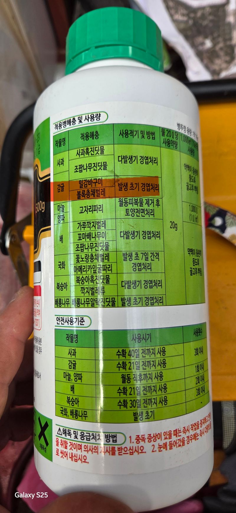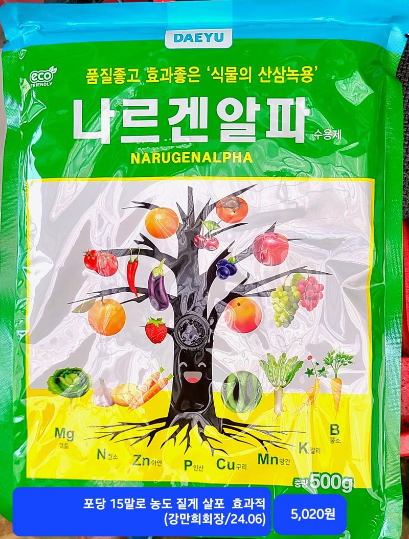 1️⃣하우스에 다이센(살균제 카/검은점무늬병,녹응애)+미네토스타(28+9b/총채,진딧물,귤굴나방)+부리오알파 +요소비료(말당 20g)+기계유(2되) 85말 혼자 살포하다 보니 10시 30분쯤 wife와서 같이함(08;30~12;00) ■노지포함 2️⃣외왓 밭에 하우스...