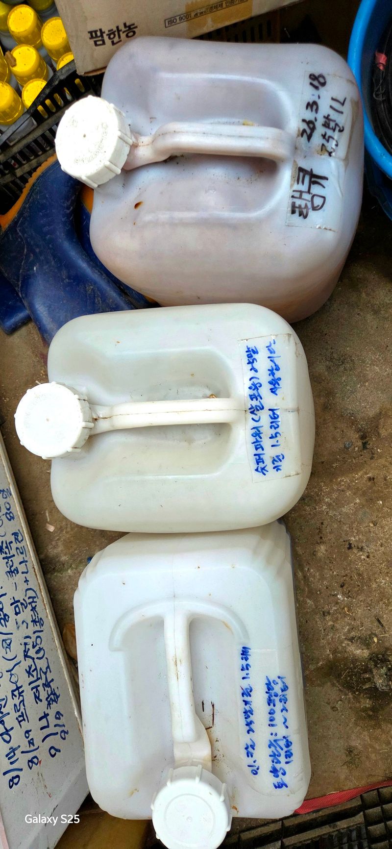 1️⃣세포분화 촉진용- 혼자 하우스가서 슈퍼파워(25말 1.5말)+땡큐(25말에 1.5말)+요소(말당 40g) 200말 6개동씩 위로 엽면시비(08;30~09;30)