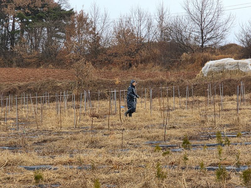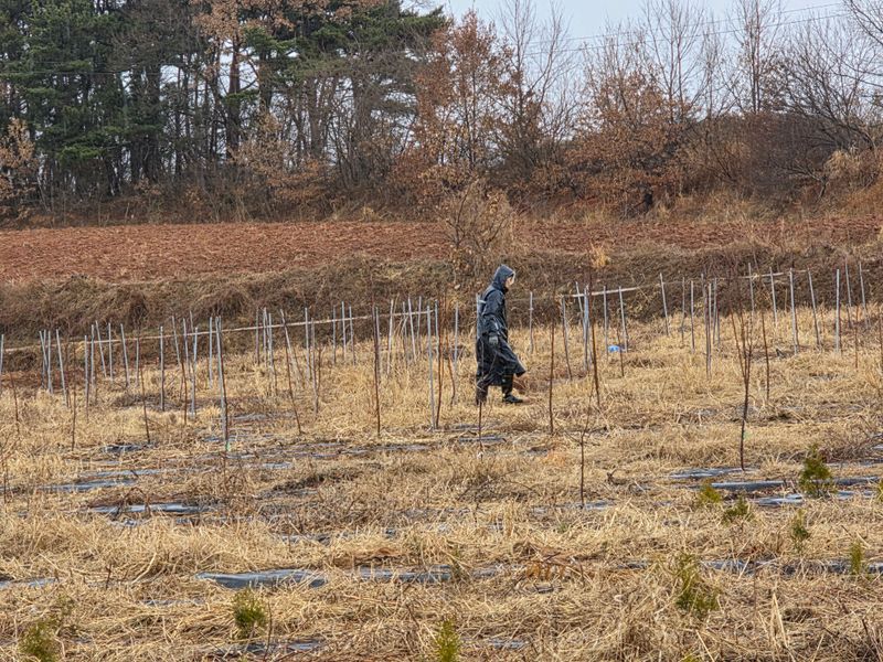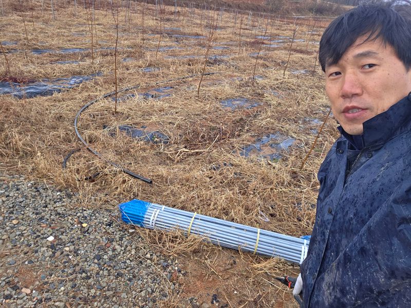 밭 수도배관 작업 4인