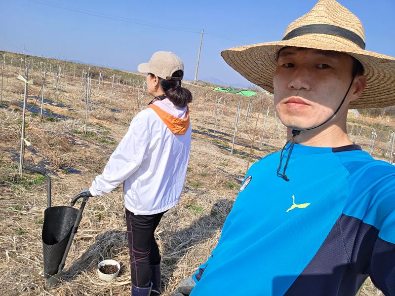 조경수 유박비료 뿌리기 2인