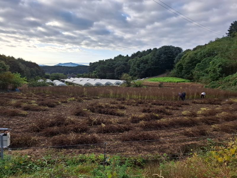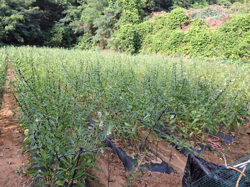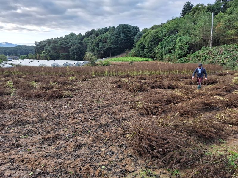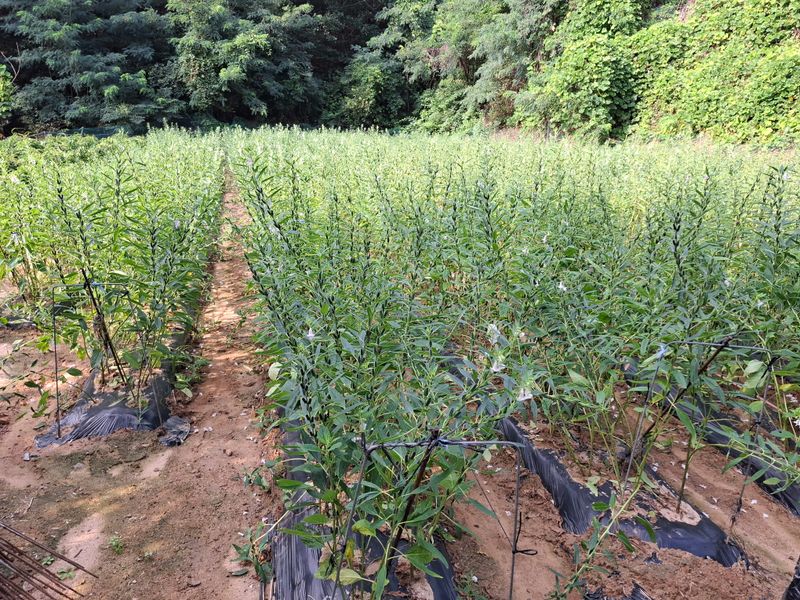 들깨 베기 수학이늦어 서둘러하고 있어요
