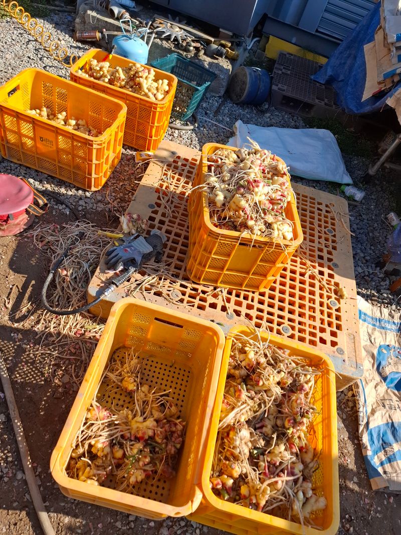 생강 손질하기 시간이 많이많이 걸리는 작업