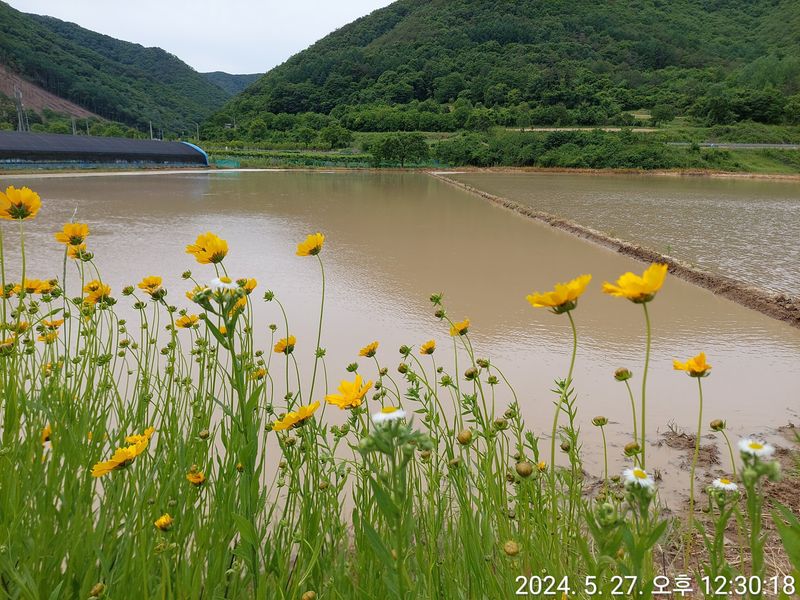 모내기 준비 완료 금계국과 개망초가 한가로움을 더해줍니다.