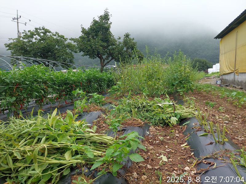 며칠만에 산에 있는 농장에 갔더니만, 미국자리공이 쑥쑥 올라왔습니다. 요것들은 얼마나 번식력이 좋은지 보이는 쪽쪽 잘라야합니다. 초피나무 암 그루에세 제법 초피가 익어갑니다.