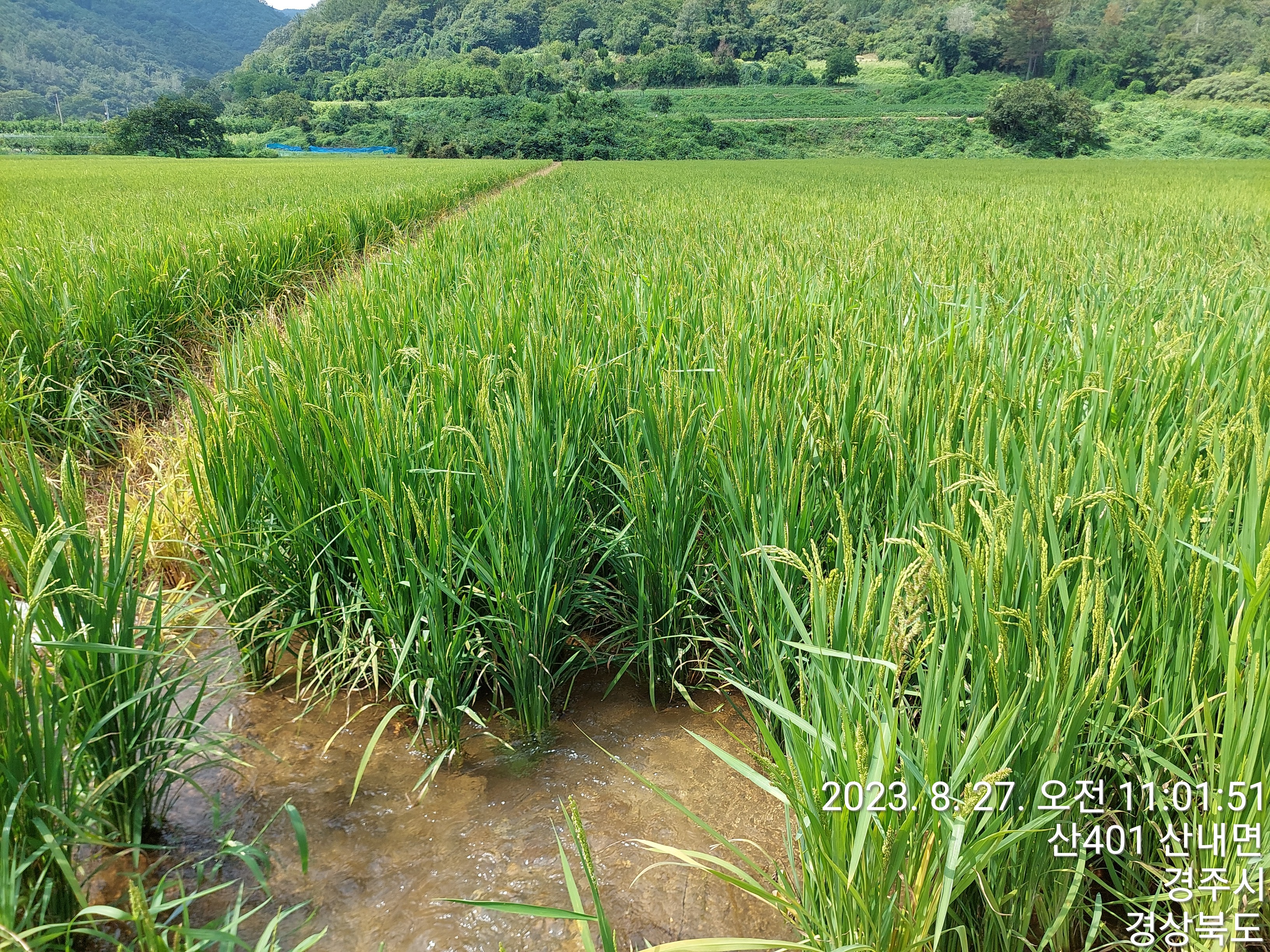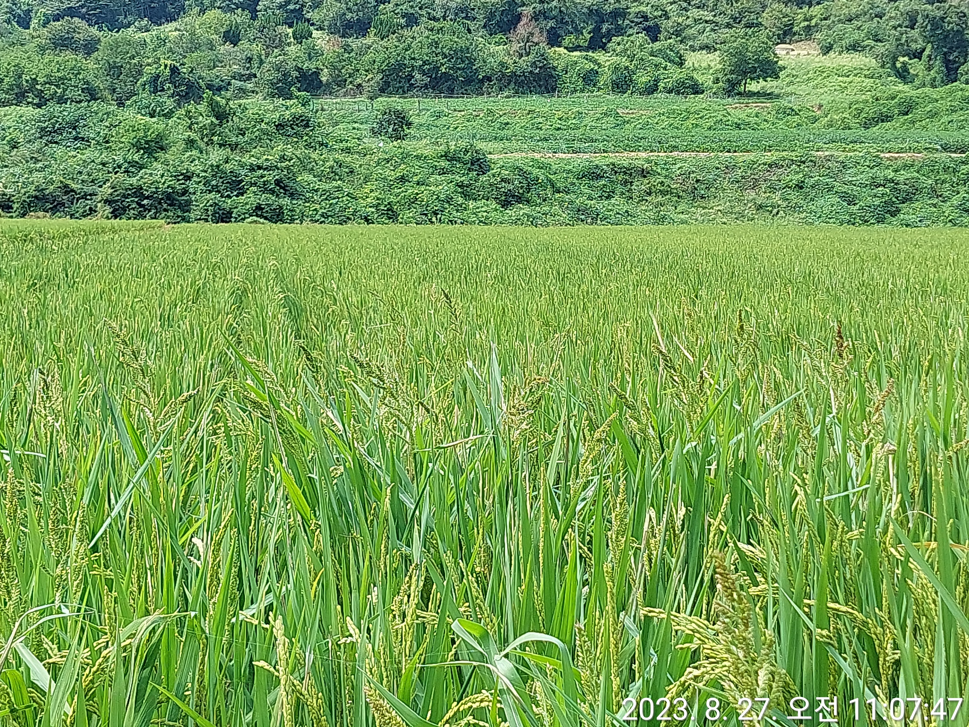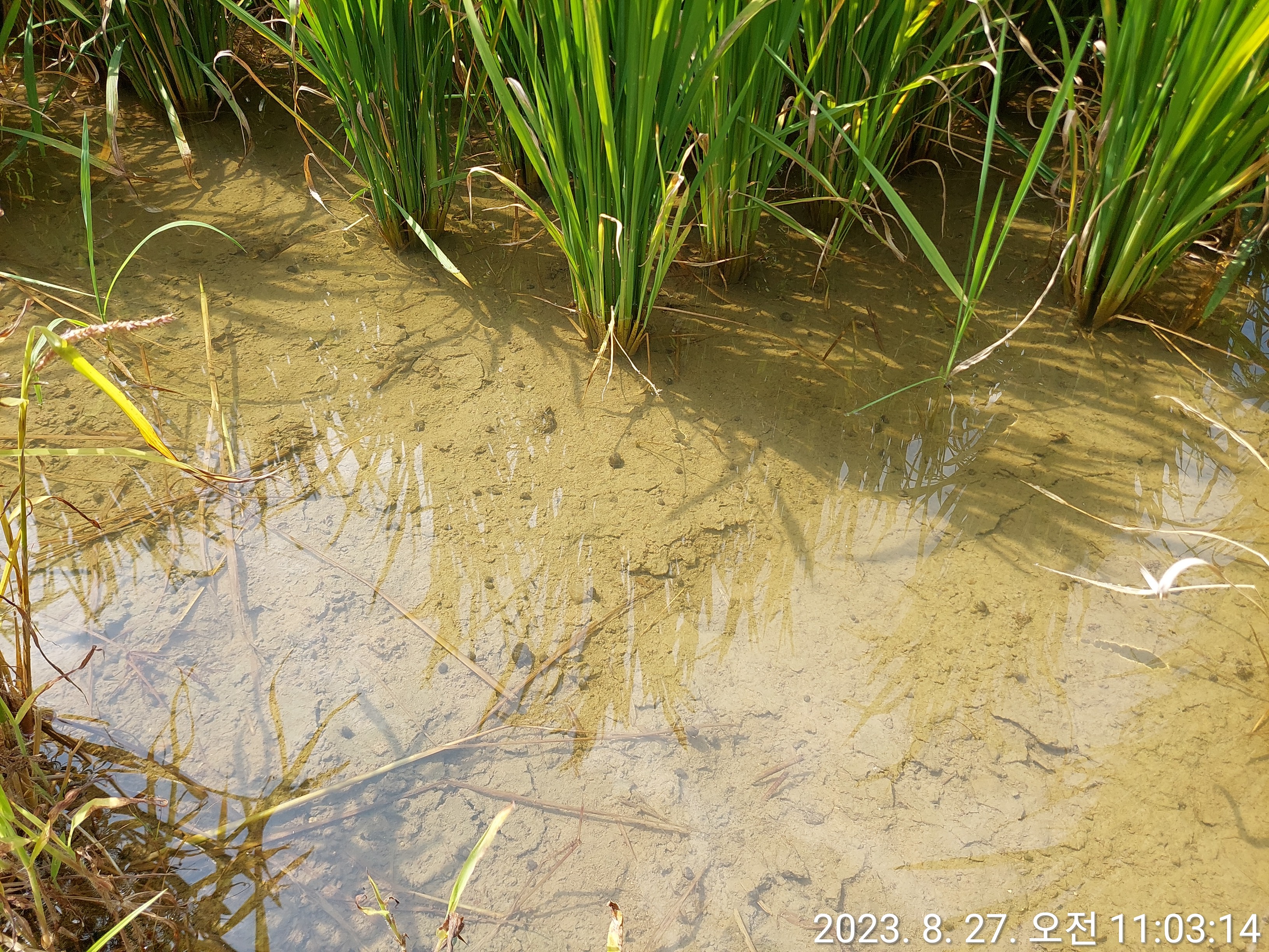 화창한 날씨에 물대기를 한다. 피가 자라서 피 제거 작업을 했다. 수 많은 우렁이이가 제초작업을 잘해준다.