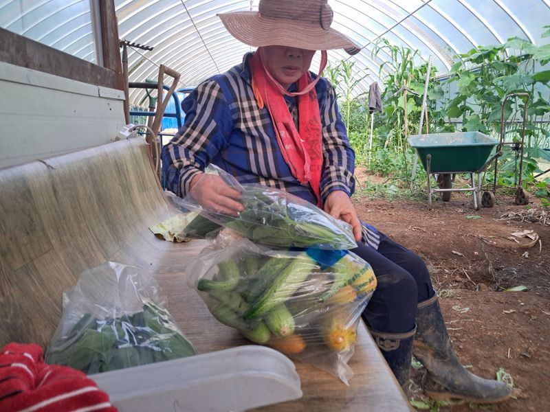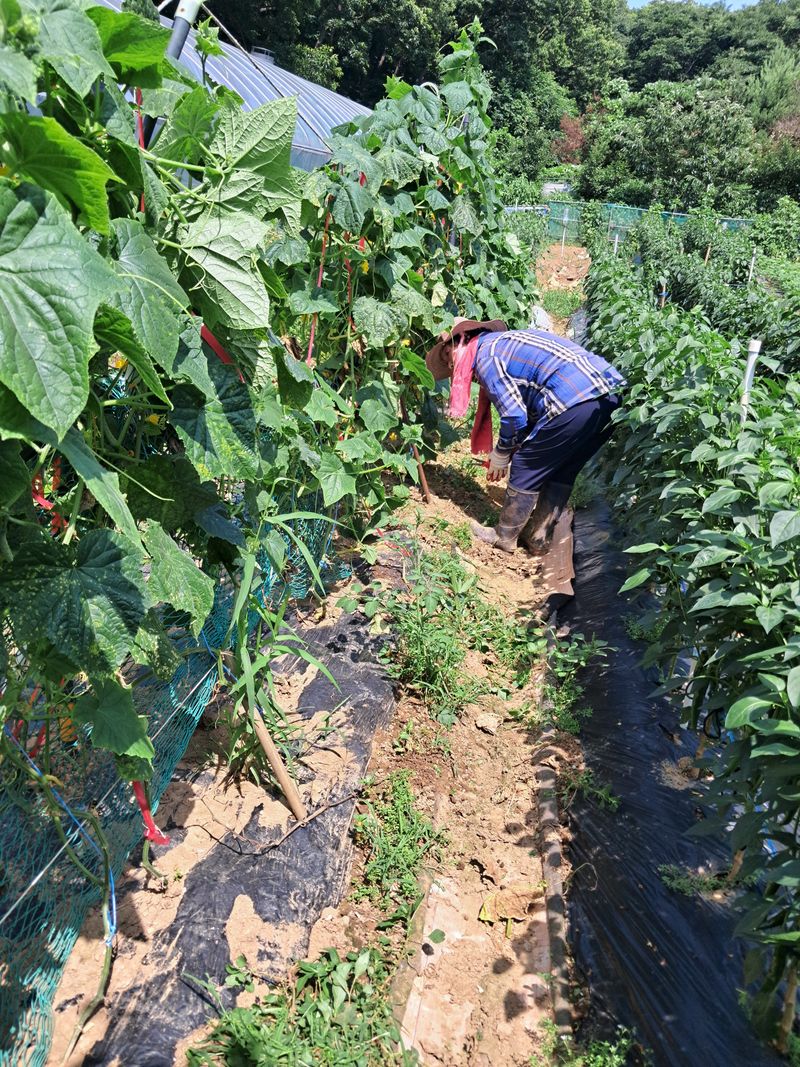 7월23일(수요일) 오전7시에 밭에가서 작물 상태도 확인하고 잡초가 하도 잘자라 소금과식초 세제를 혼합하여 뿌리면 잡초가 죽는다기에 혼합하여 뿌리고 탐스런작물 사진도 찍고 마음을 다스리고 현지에서 오이와방울도마도 따서 먹고 커피마시고 자연의 신선함을 만끽하면서 보냈습니...