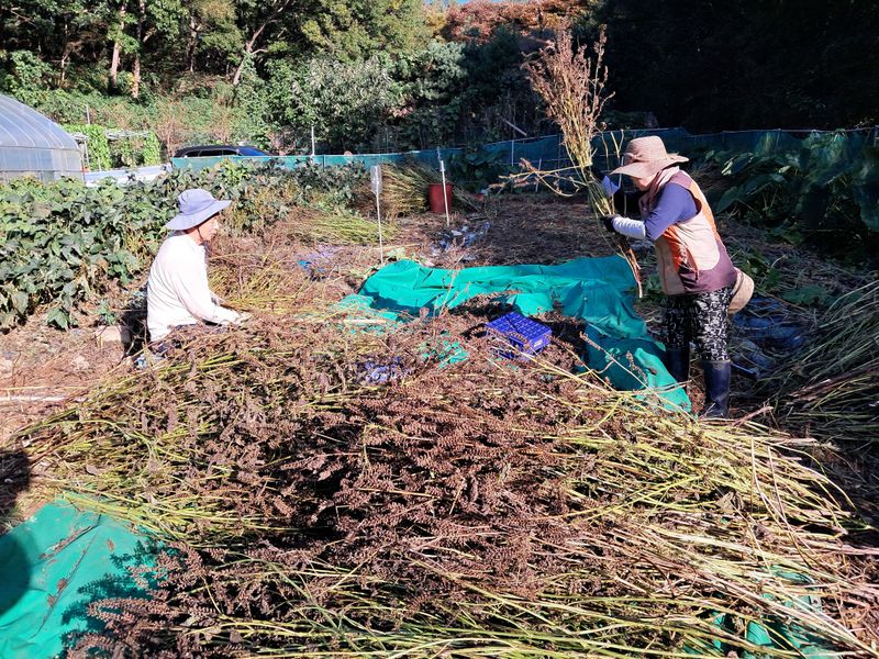 콩(서리태) 11월30일 날씨가 고르지않아 하우스안에 널어두었던 콩을 오늘 마지막으로 털었습니다. 검정콩 3키로 흰콩5키로 수확하고 올겨울 작업을 마무리 하였습니다. 밭 정리를 끝내고 집에서 쉬면서 12월.1월.2월까지 건강에 신경쓰면서 내년 계획을 세우고 팜모닝에서...