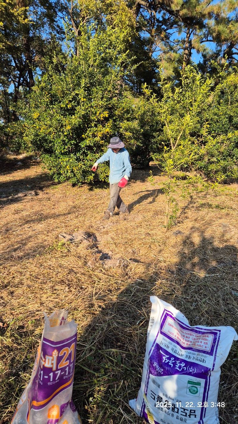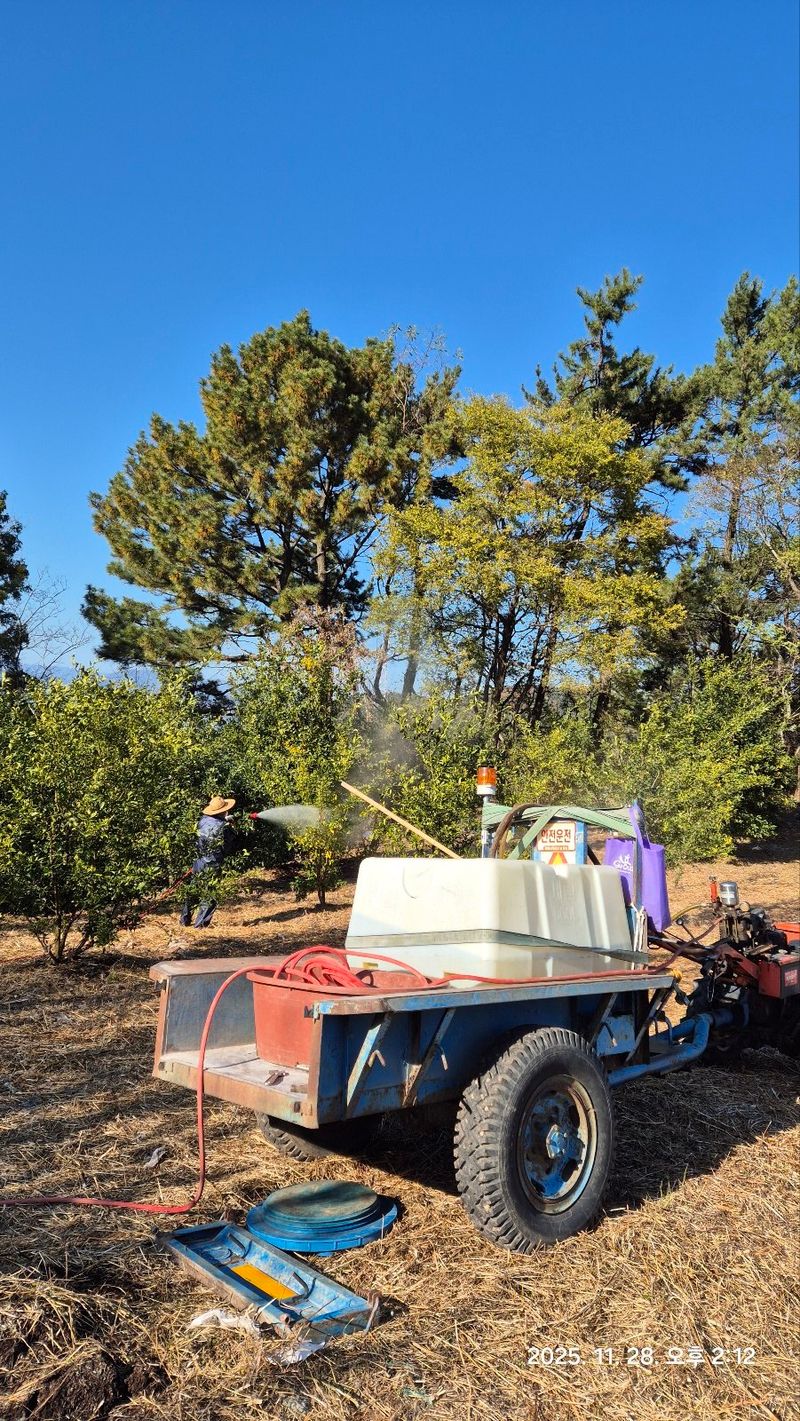 유자밭 퇴비거름주기 놀인제 약 살포하기