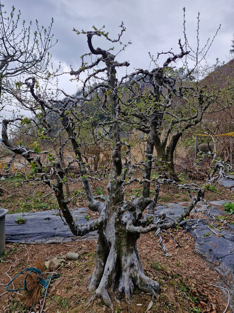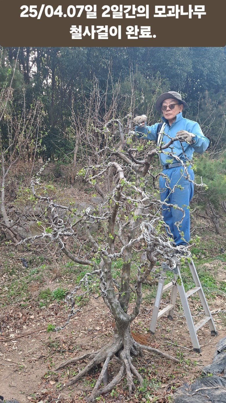 정원수형으로 기르던 모과나무를 재사용 철사를 이용한 철사걸이하여 키를 낮추고 수형을 잡아 주기위해 철사걸이를 하여줌. (4/1~07일)