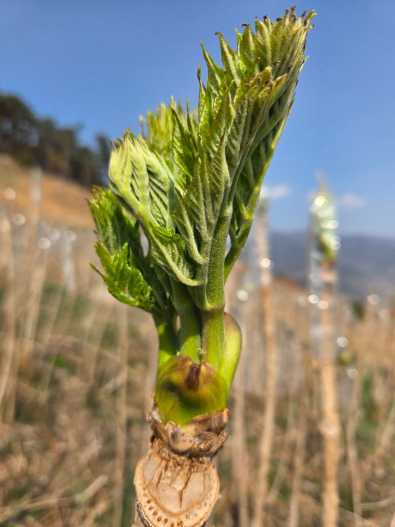 두릅나무에 비닐캡 쐬우기 작업 냉해 피해방지