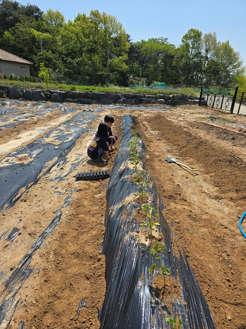 고추.참외.가지 .고구마 등등 모종심기를 했는데요 비바람이 너무 강합니다 좀불쌍합니다~ㅠㅠ